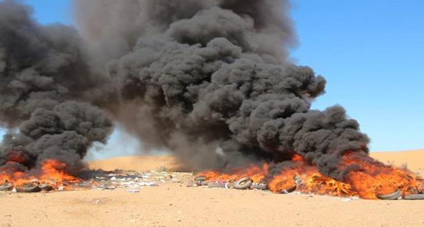 وتتكون المواد المتلفة من 64 كلغ من الحشيش و32 كلغ من الحجر المغربي، وحوالي 10 آلاف قنينة خمر، إضافة إلى كمية كبيرة من الأقراص المخدرة ولبلاستيك و45 علبة من علكة الهوليود ، وفقا لوكالة الأنباء الرسمية (وما).