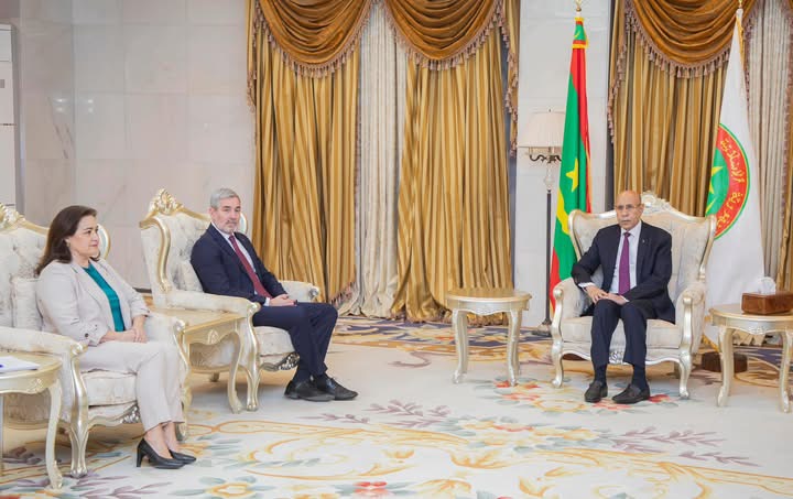 أجرى الرئيس محمد ولد الشيخ الغزواني، اليوم الخميس، مباحثات مع رئيس حكومة إقليم جزر الكناري، فرناندو كلافيخو، وذلك في القصر الرئاسي بالعاصمة نواكشوط.